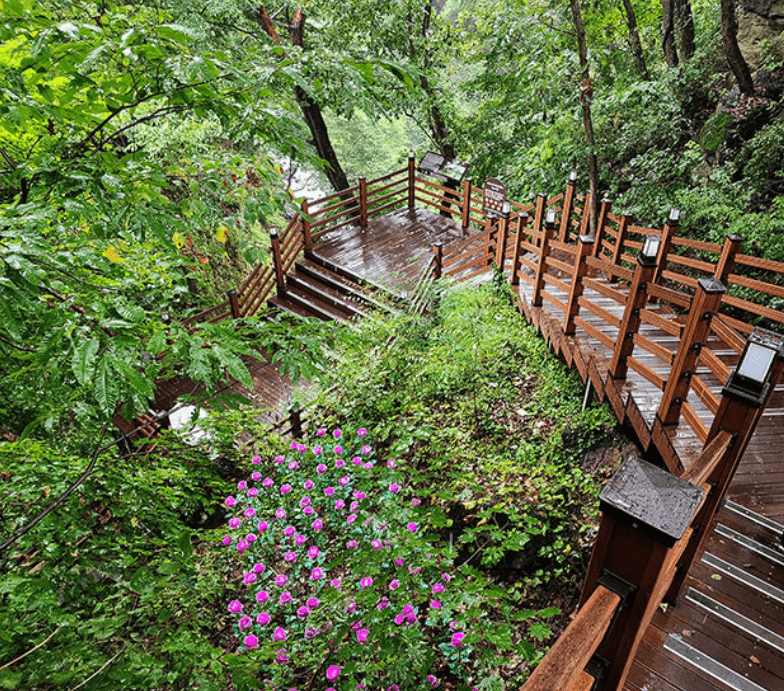 - 산책로를 따라 이동하며 자연을 감상할 수 있는 코스입니다.