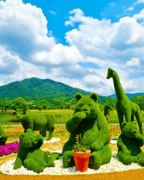 - 동물 토피어리: 기린, 코끼리 등 동물 모양의 대형 토피어리가 설치되어 있어 아이들에게 인기입니다.
